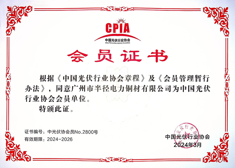 中國光伏行業(yè)協(xié)會會員單位證書